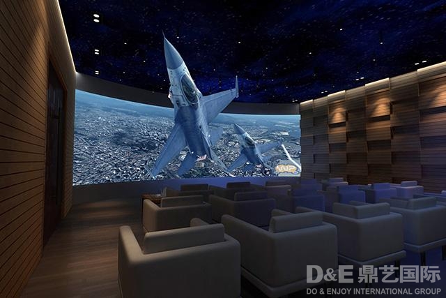 主要是利用正投原理,分别有4台投影机围绕在球幕周围,运用多画面图形拼接融合处理设备和几何校正无缝拼接技术将投射出的内容组成无缝统一的画面,在一台控制主机上完美实现多窗显示、边缘融合、色差校正、多路信号源选择、输入信号自动调整和预存场景自由调用等功能。