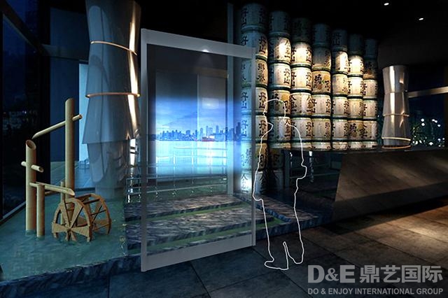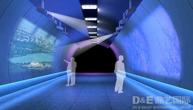 分为主体模型场景、造型灯光系统、光学成像系统、计算机多媒体播放及控制系统、音响、编剧及节目制作。