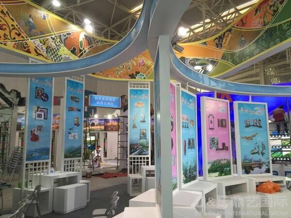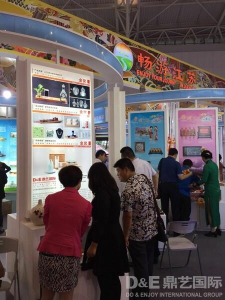 在组织丰富展品参展的同时,鼎艺国际还承担了本届博览会江苏展区的整体策划、展区创意设计、工程制作、布展施工以及组织全省十三市旅游商品企业参展等各项系统工作。由鼎艺国际承担设计的江苏展区融合传统与现代,充分体现了江苏旅游商品悠久的历史文化底蕴和产业融合发展的创新风采,获得与会领导与现场观众的高度认可。